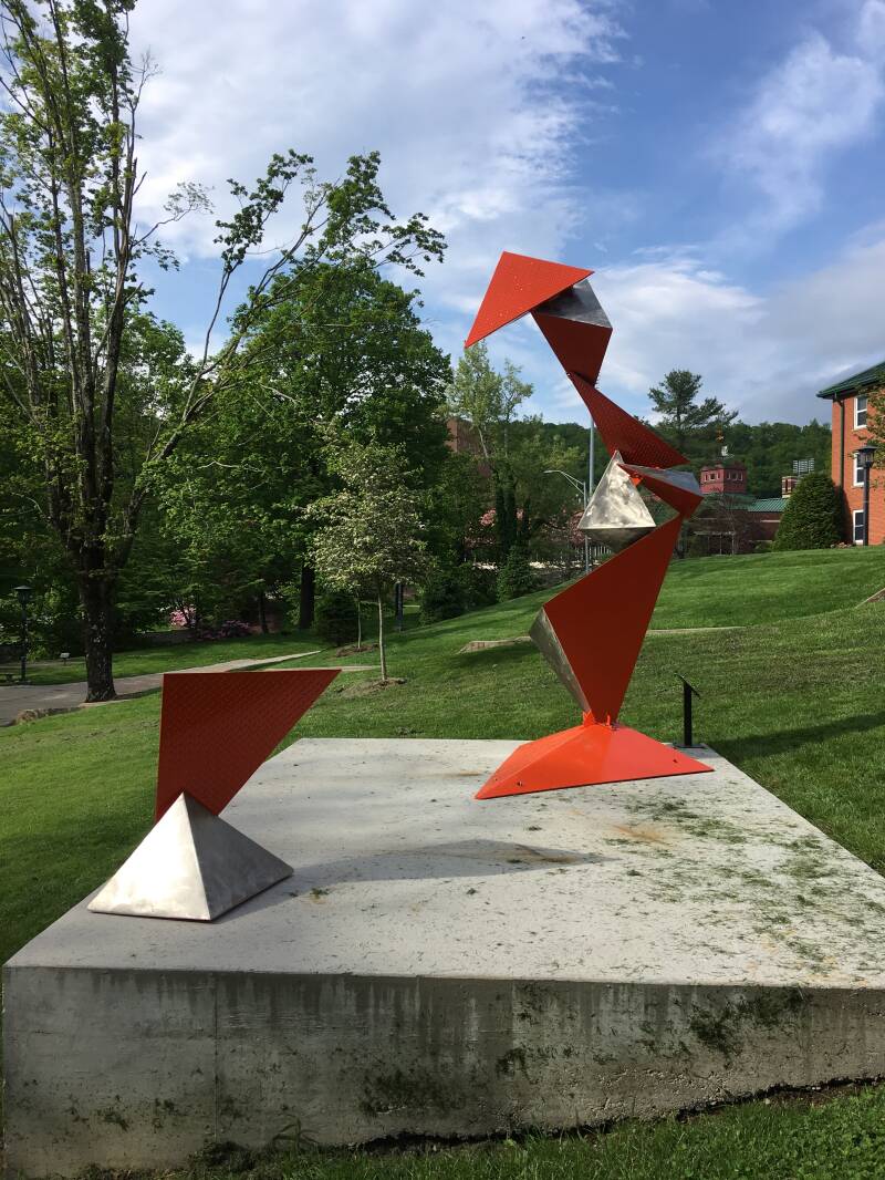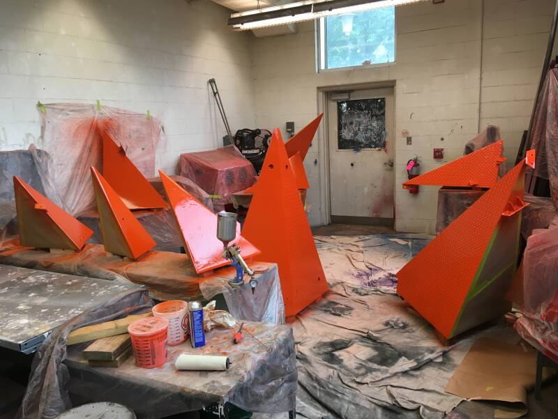 Repainting outdoor sculpture for exhibition.
