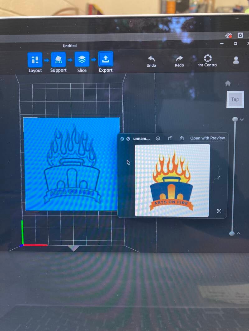 Our new Halot printers are a welcome change to our old Objet24 printer, which was far too expensive to run. The test design went from a vector graphic to a relief print in under 2 hours. A silicon rubber mold was later made so wax positives could employed in the ceramic shell process for our upcoming "Arts on Fire" in June.